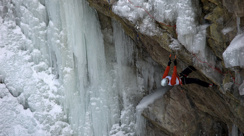 Besides the main competition, there were tons of other events to check out as well. There's the ice axe throwing competition, the screaming barfies competition (see how long you can submerge your hands in a bucket of ice), lots of clinics and demonstrations, the lasagna feed at the community center (incl. all the Fat Tire you can drink), the Petzel party (more Fat Tire), slide shows (more Fat Tire), and oh course, you have to go and check out the Orvis hot springs. Tanya, Glenn and the rest of Team Hideous were there as usual, but we barely saw them this year as they are pretty much an event of their own.